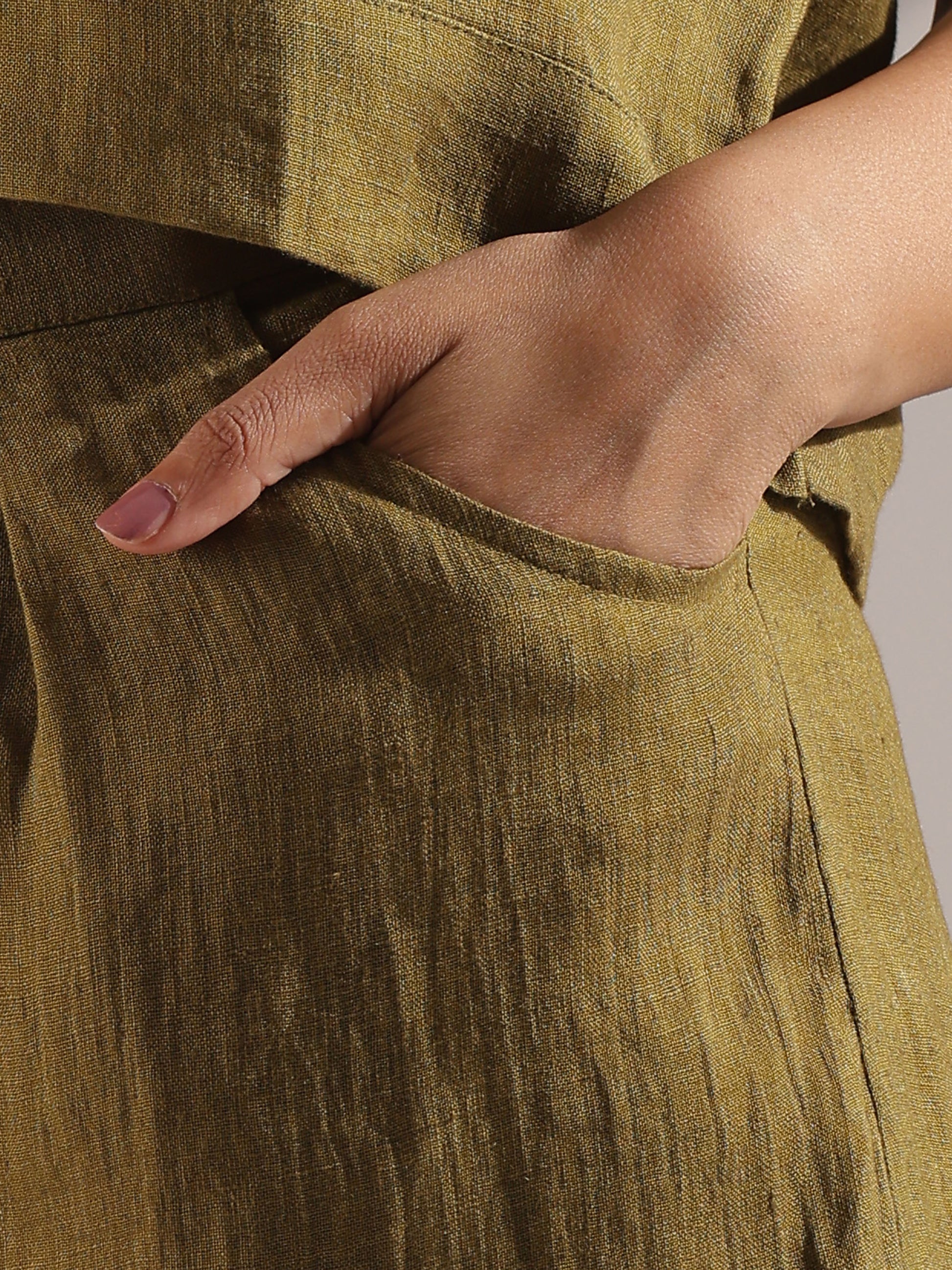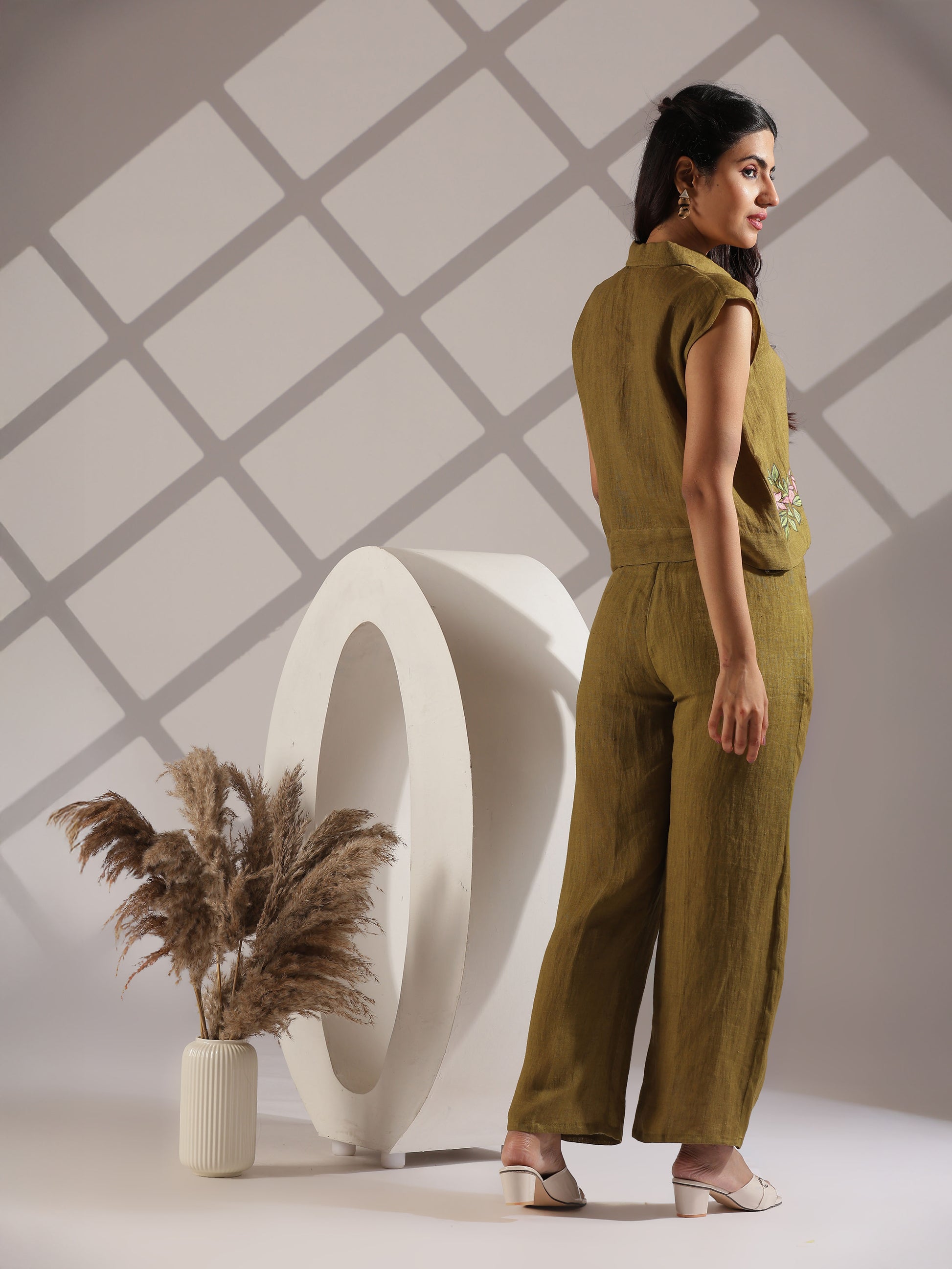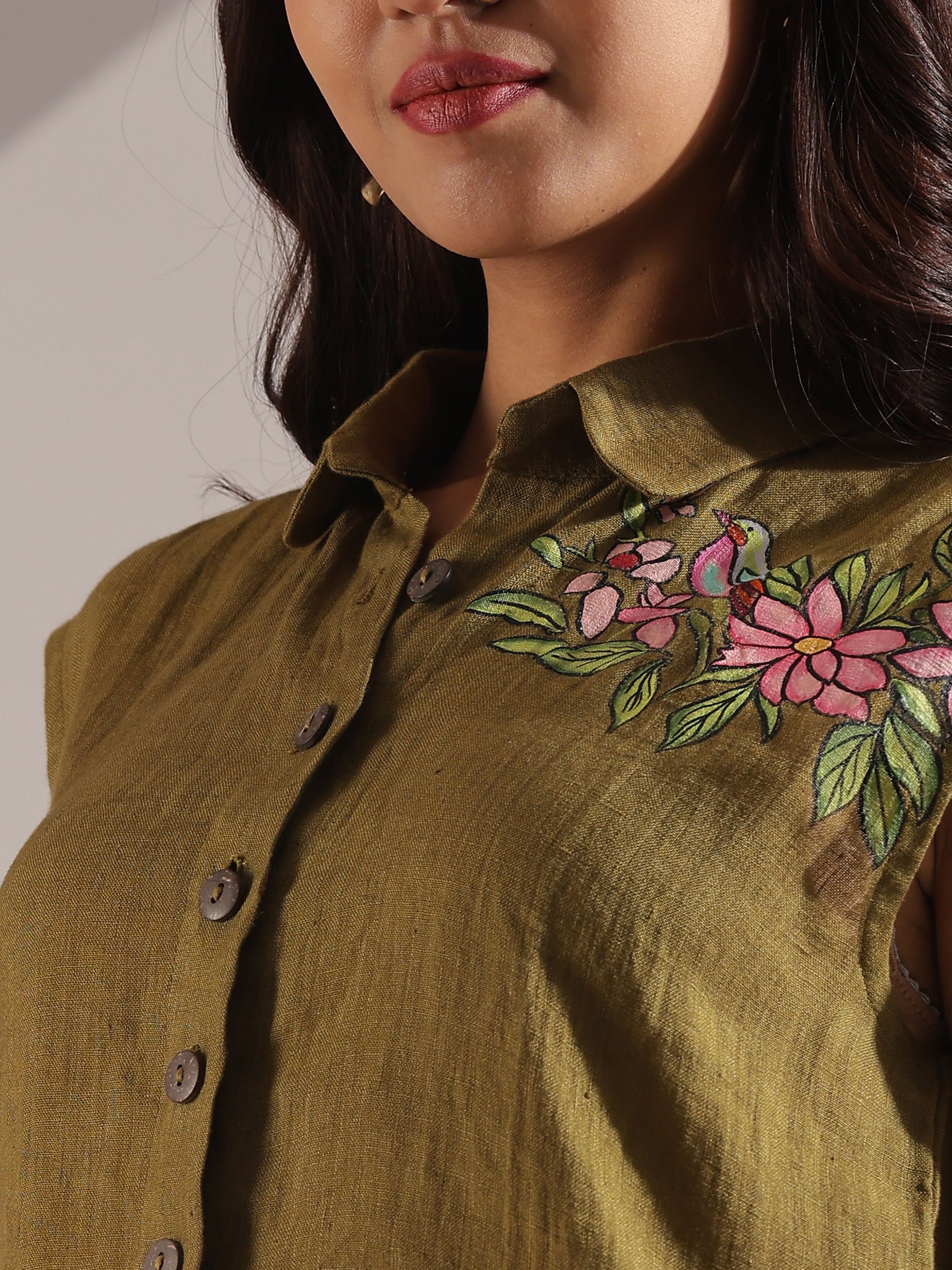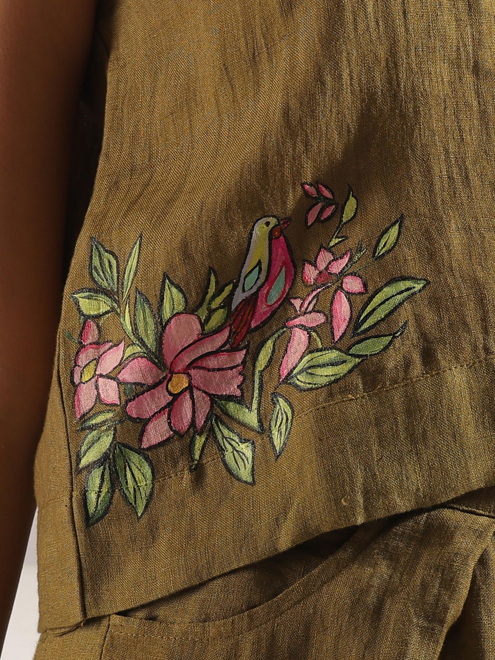 Linen hand painted co-ord set in olive green